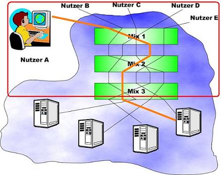 JAP verschlüsselt nur auf der Verbindung zwischen Nutzer und den Servern des Anonymisierungsdienstes.